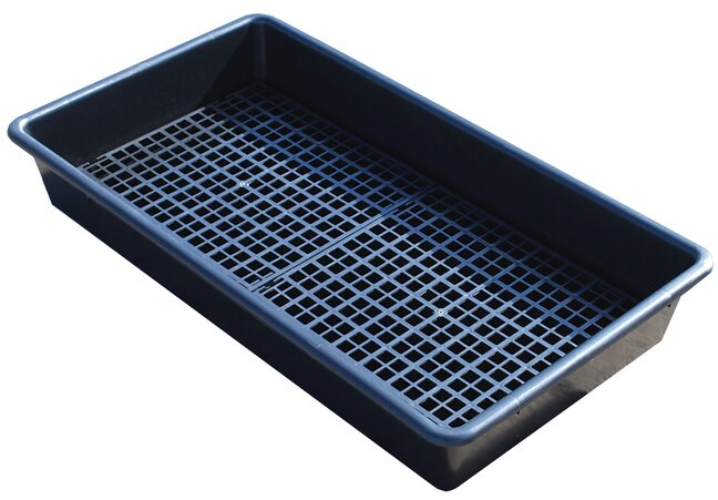 Auffangwanne aus PE für KleinGebinde mit gitterrost schwarz 1000 x 550 x 150 mm, auffangvolumen 64,5 L