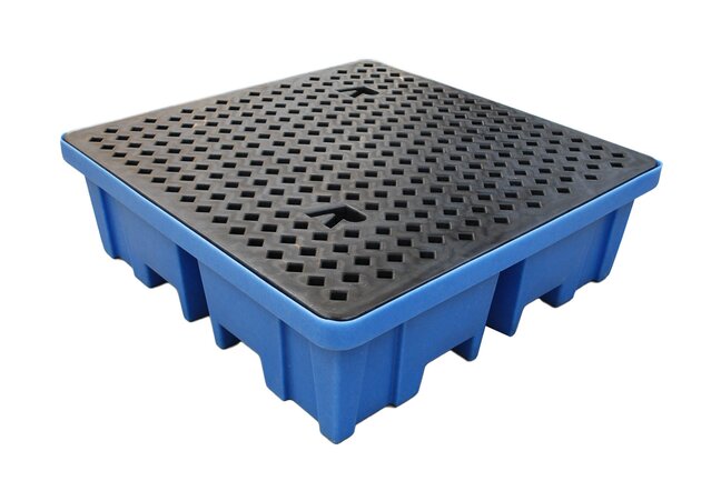 Auffangwanne aus PE für Kleingebinde und Fäßer 1280 x 1280 x 275 mm, Auffangvolumen 230 L