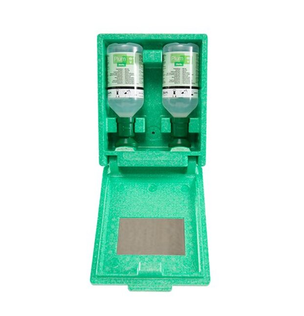 Augenspülstation Plum 4650 mit 2 Flaschen 500 ml Natriumchloridlösung (0,9%) grüne Wandbox (Stk = Box)