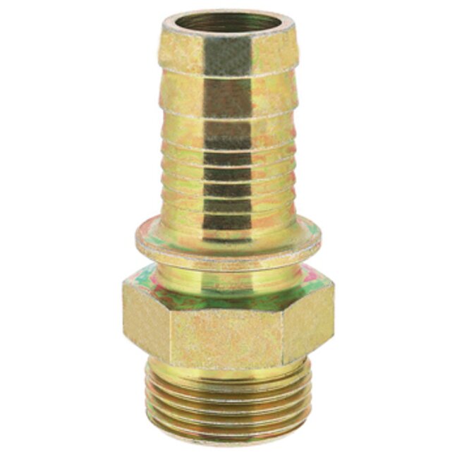 Perfekter Schlauchsitz Durch Gedrehte Tüllenkontur, Maximale Bohrung für Grösstmöglichen Durchfluss. aus Stahl, Verzinkt und Gelb Passiviert (Chrom-Vi-Frei).