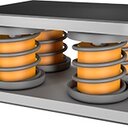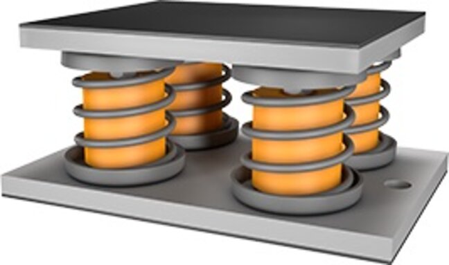Dmsn-Stahlfeder Blockelement mit Hochleistungsdämpfer für Geringe Einbauhöhen und Hohe Belastungen / Geringe Bauhöhe von 79 MM / Sylodamp® Inside Ideal für Maschinen mit Vielen Start- und Abschaltzyklen / Kopf- und Fußplatte mit 6 MM Sylomer® Antirutschplatte / Federn Kathodisch Tauchlackiert (Ktl) für Erhöhten Korrosionsschutz / Sichere Verbindung Zwischen Teller und Feder Dank Spezieller Verklebung / Kopfplatte mit M 10 Gewinde / Einfache Belastungskontrolle Dank Offener Bauweise