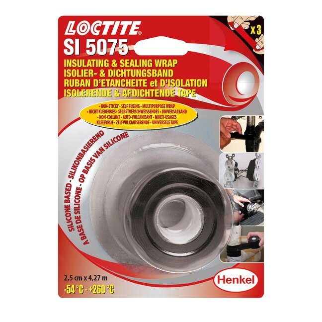 Selbstverschweißendes Silikonband, Das für die Zuverlässige, Vorübergehende Reparatur von Diversen Werkstoffen Empfohlen Wird. Loctite® Si 5075 Haftet Nicht Auf Dem Werkstoff, Sondern Wird Als Band In Lagen Übereinander Gewickelt, die miteinander Verschmelzen. Typische Anwendungen sind U.A Reparaturen An Flexiblen Schläuchen und An Rohren, Werkzeuggriff-Umwicklungen und Elektrisch Isolierende UMMantelungen.