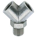 Pneumatik-Y-Stück; Messing Vernickeltmit Konischem aussen- und 2 X Zylindrischem Innengewinde
