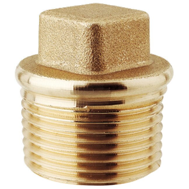 Stopfen Messing blank R 3/8xxx AG mit Rand und 4-Knt. Aussengewinde kegelig