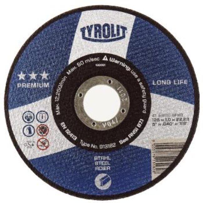 TYROLIT-Trennscheibe 41 - 115 x 1 x 22,23 mm Standard** - Spez.: A46Q-BFS Stahl + Inox Typ-Nr.: 34332859