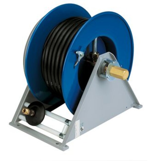 Schlauchaufroller für Druckluft mit Geschlossener TroMMel aus Stahl. Grosses Modell mit Fester Halterung, GuMMischlauch und Esi-Sicherheitsschnellkupp...