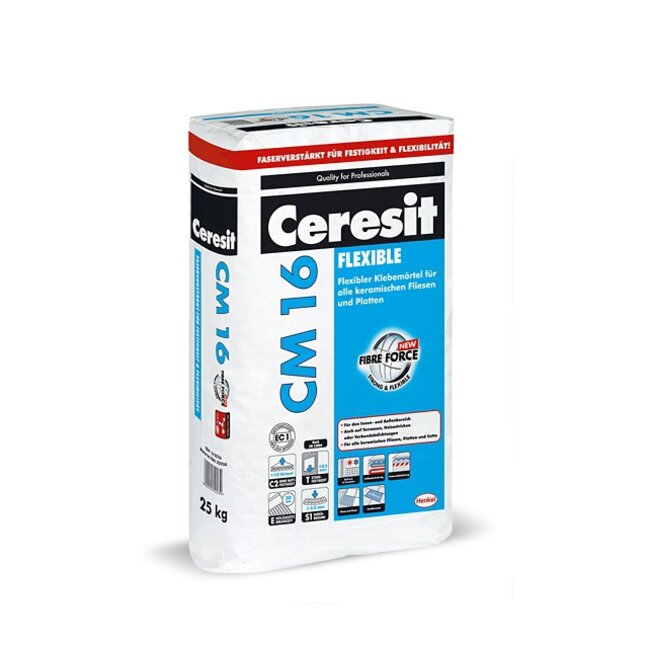 flexkleber "ceresit cm16" - 25 kg Sack flexibler Klebemörtel für alle keramischen Fliesen
