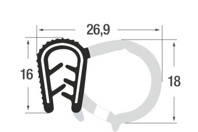 GUMMI-PROFIL S9038 QUAL. EPDM 65 Shore A Kederprofil